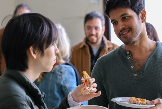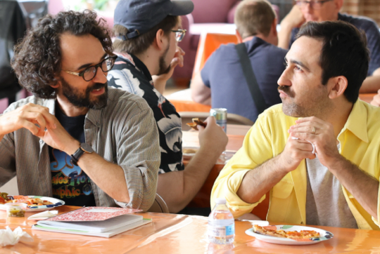 In-person events include lunch. Spend time with fellow professionals to talk music and compare notes. Play your music and get feedback.